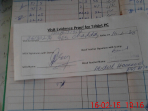 | Attendance Register | Head Teacher | MEA with School | Visit Proof |