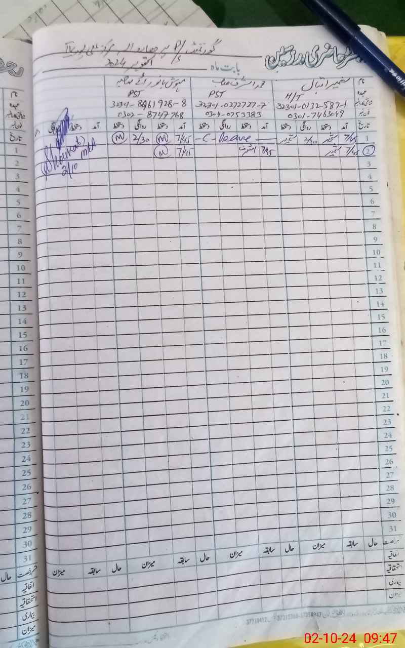 | Name: SH**** Iq**** Designation: (School Headmaster's/Headmistress's) PST Phone/Cell Number: 03**** |
