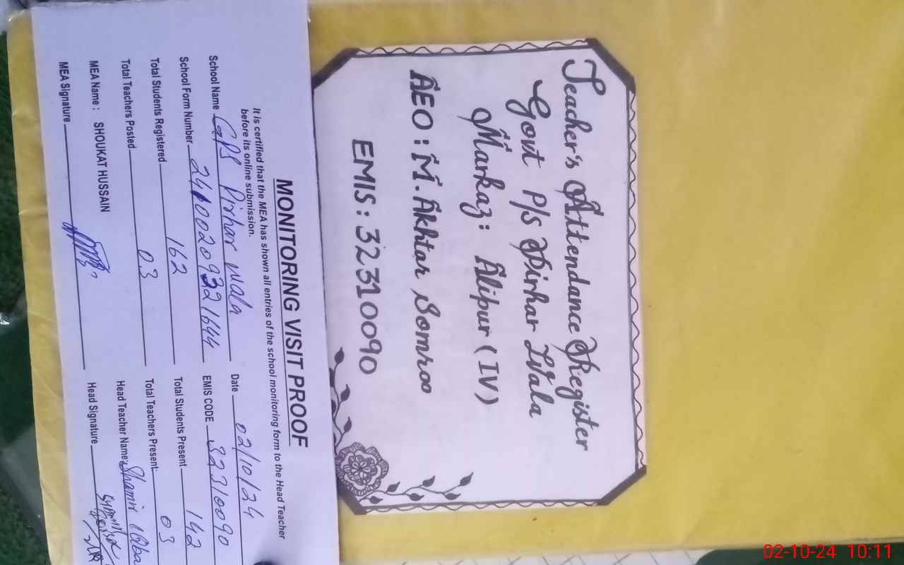 | EMIS Code: 32310090 | Name of School: GPS PIRHAR WALA | |||