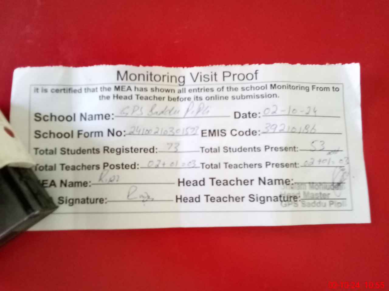 | EMIS Code: 39210186 | Name of School: GPS SADDU PIPLI PO PAKPATTAN | |||