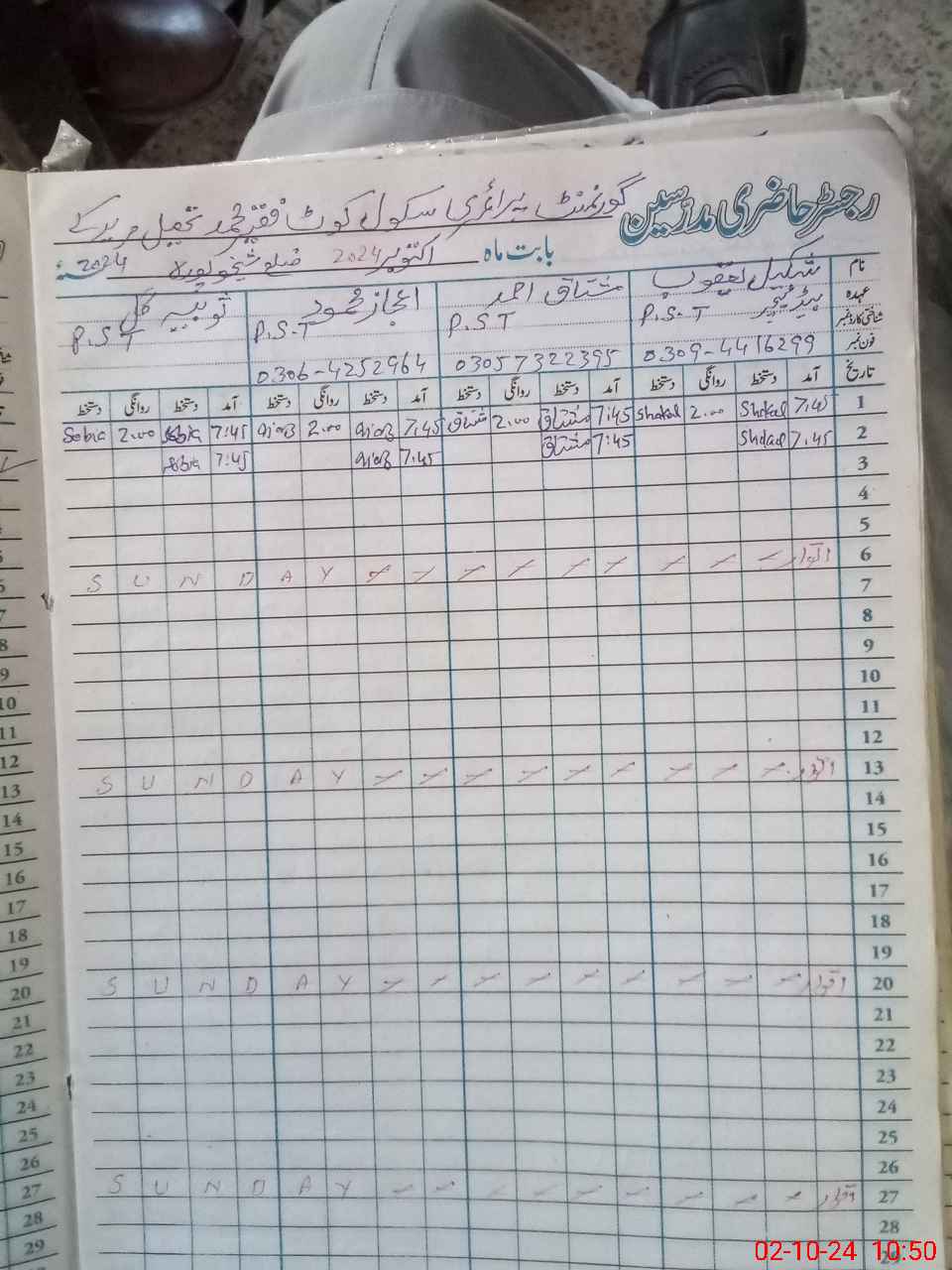 | Name: SH**** YA**** Designation: (School Headmaster's/Headmistress's) PST Phone/Cell Number: 03**** |