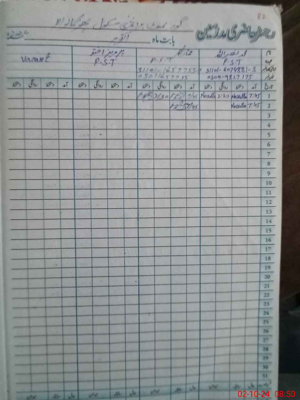 | 31**** | Mu**** Pa**** Ak**** | ESE | Contract | 0 | 0 | 0 | 0 | 0 | 0 | 0 | 0 | 0 | Absent (Un-Authorized) |