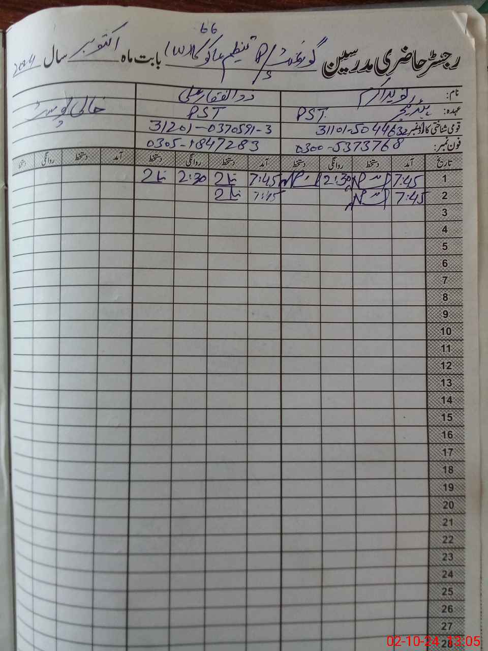 | Name: Na**** Ak**** Designation: (School Headmaster's/Headmistress's) PST Phone/Cell Number: 03**** |