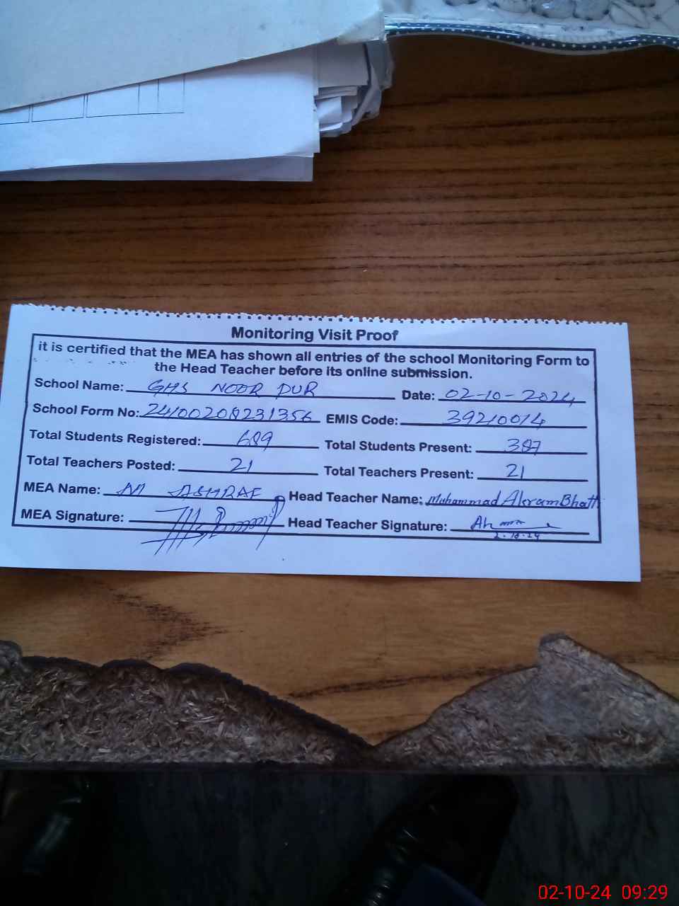 | EMIS Code: 39210014 | Name of School: GHS NOOR PUR PAKPATTAN | |||