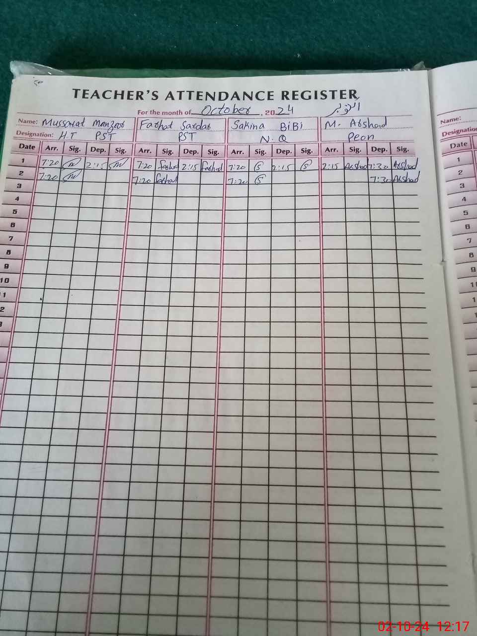 | Name: MU**** MA**** Designation: (School Headmaster's/Headmistress's) PST Phone/Cell Number: 03**** |