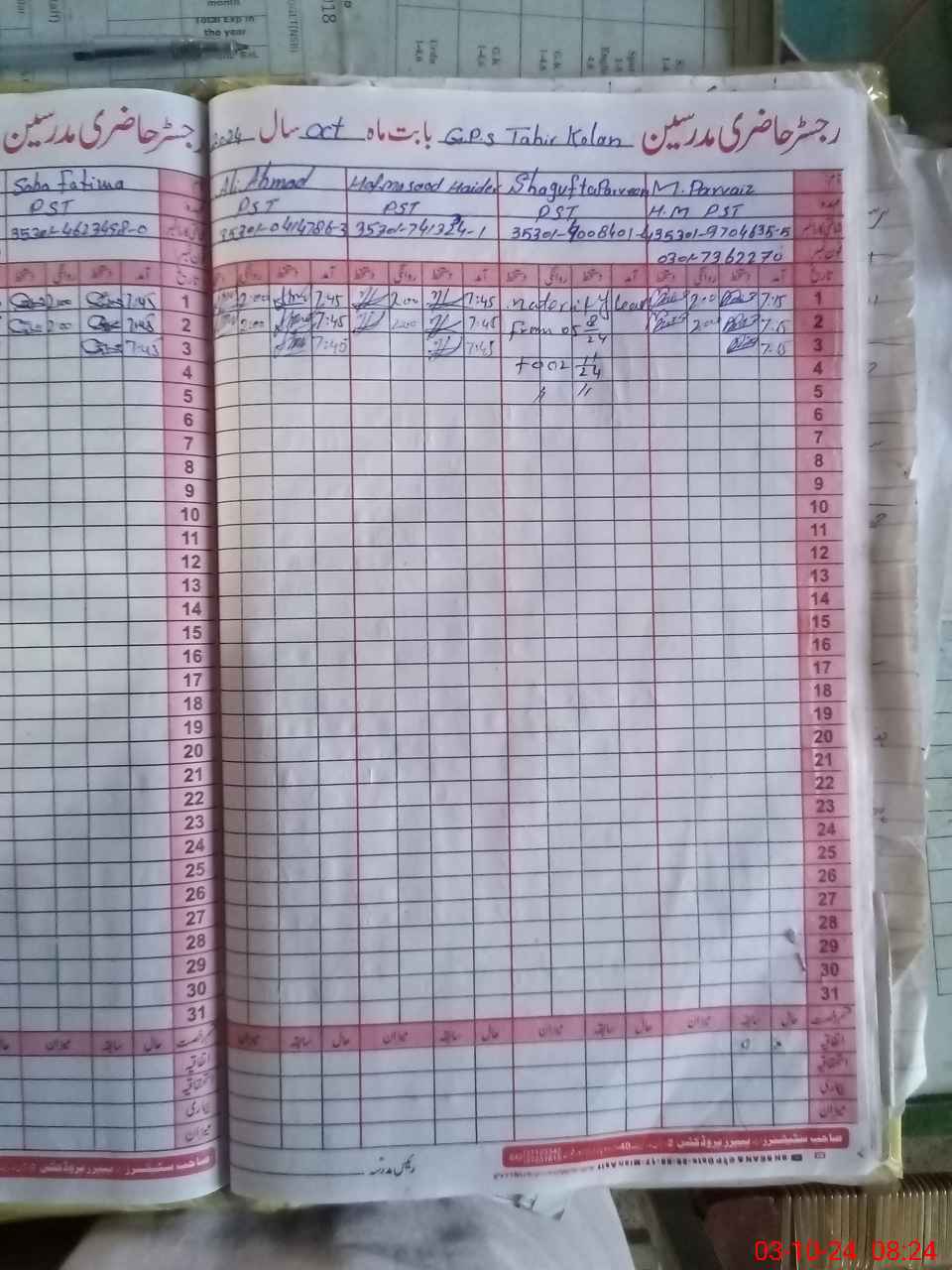 | 35**** | Sh**** Pa**** | PST | Regular | 30 | 0 | 0 | 30 | 0 | 0 | 0 | 0 | 0 | Maternity |