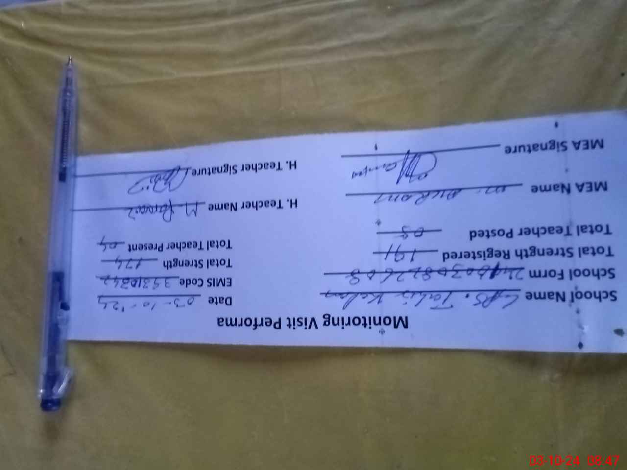 | Monitoring Date: 03-10-2024 | Start Time: 03-10-2024 08:22 AM | End Time: 03-10-2024 08:51 AM | Name of MEA: MU**** AK**** (R**** | |