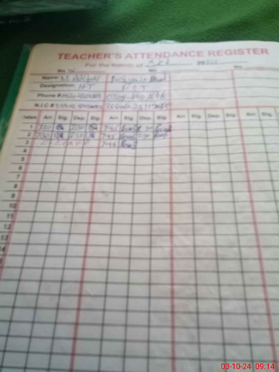 | Name: MAS**** Designation: (School Headmaster's/Headmistress's) PST Phone/Cell Number: 03**** |