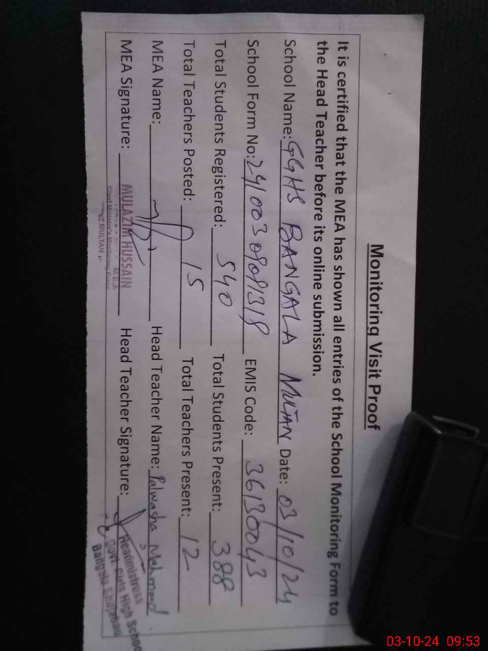| EMIS Code: 36120043 | Name of School: GGHS BANGALA SHUJABAD | |||