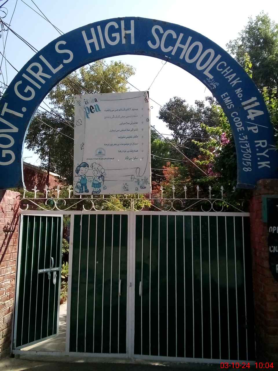 | EMIS Code: 31330158 | Name of School: GGHS CHAK NO. 114/P | |||