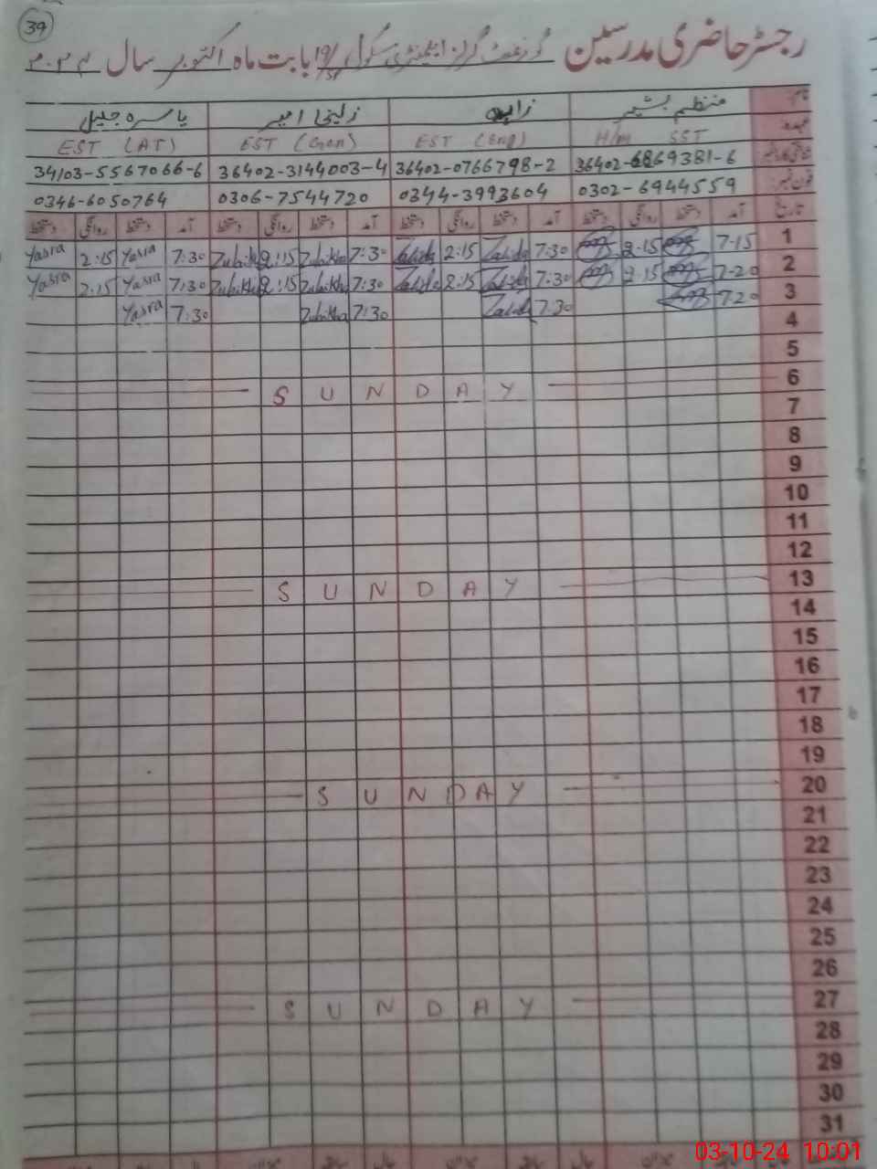 | Name: MU**** BA**** Designation: (School Headmaster's/Headmistress's) S.S.T.(GENERAL) Phone/Cell Number: 03**** |