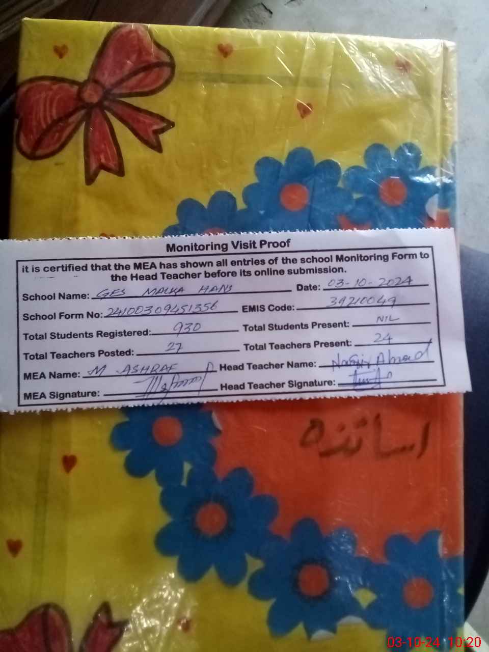 | Attendance Register | Head Teacher | MEA with School | Visit Proof |