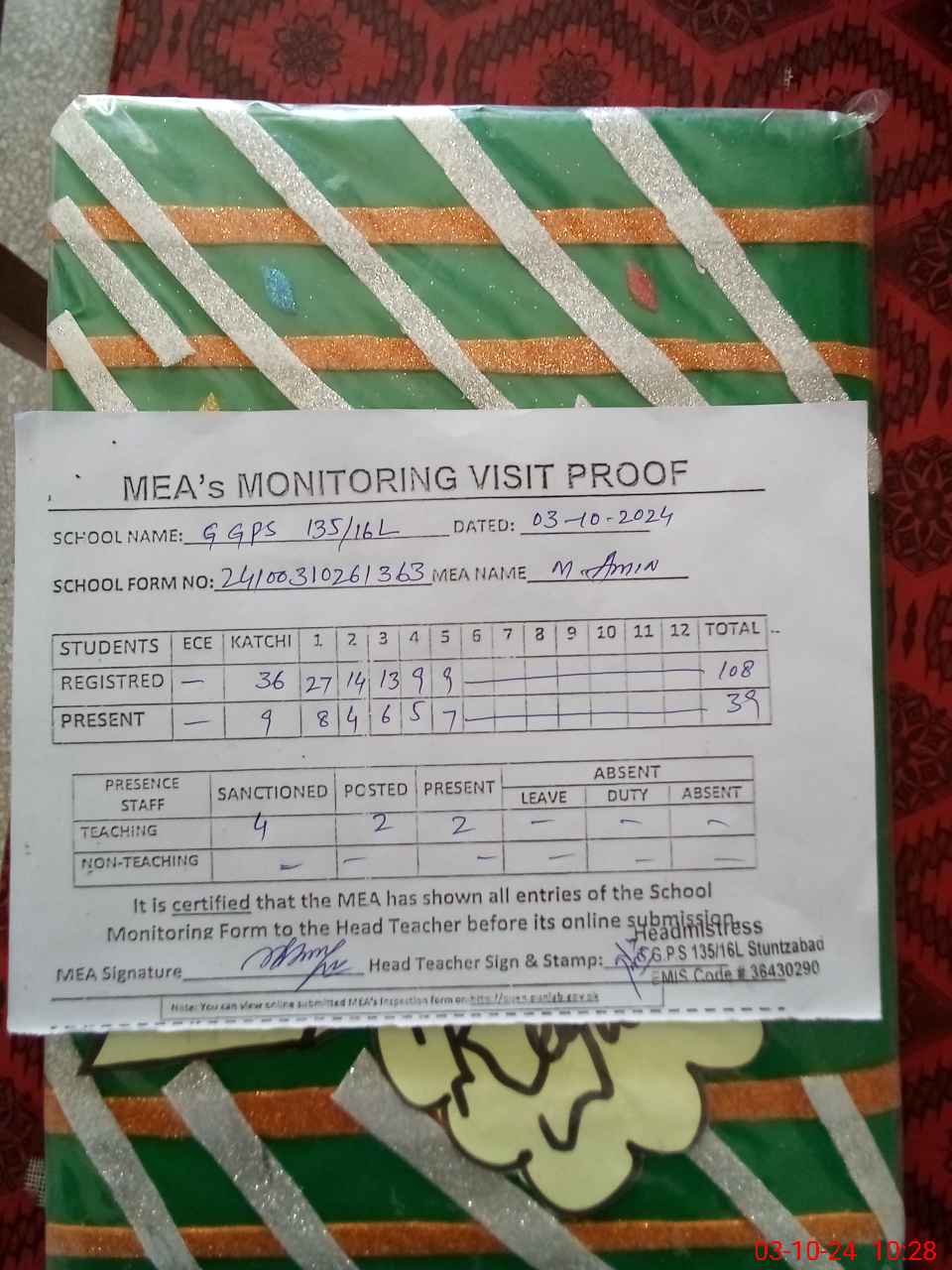 | EMIS Code: 36430290 | Name of School: GGPS 135/16-L, P/O 135/16-L STUNZABAD, MIAN CHANNU | |||