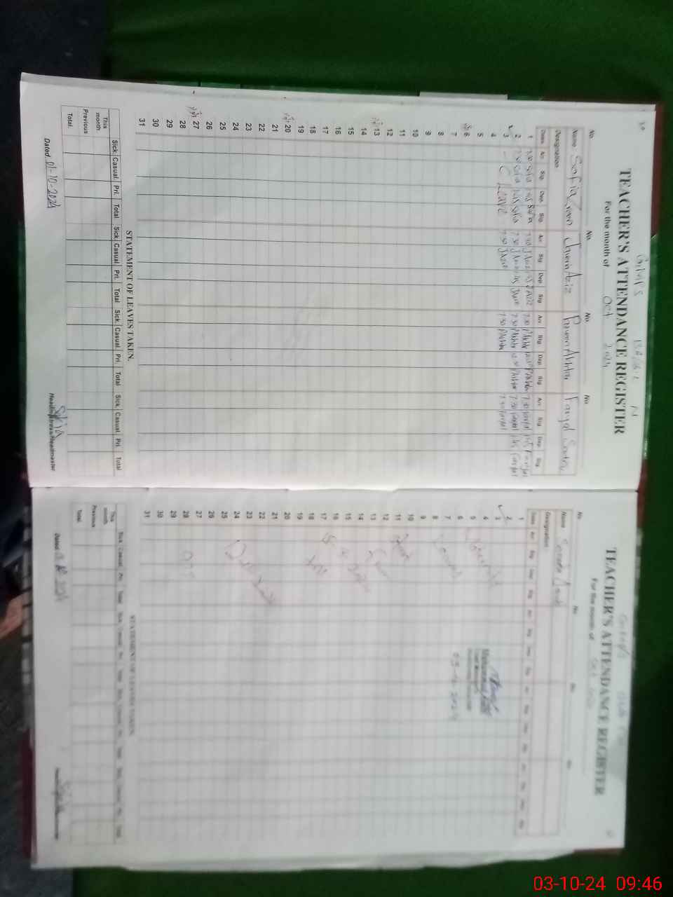 | Total no. of Classrooms: 5 No. of Classrooms Used for Teaching: 5 No. of Classrooms Storing Old Furniture, FTBs, etc: 0Comments if Any: FTF record register not updated for the month of September 2024 |