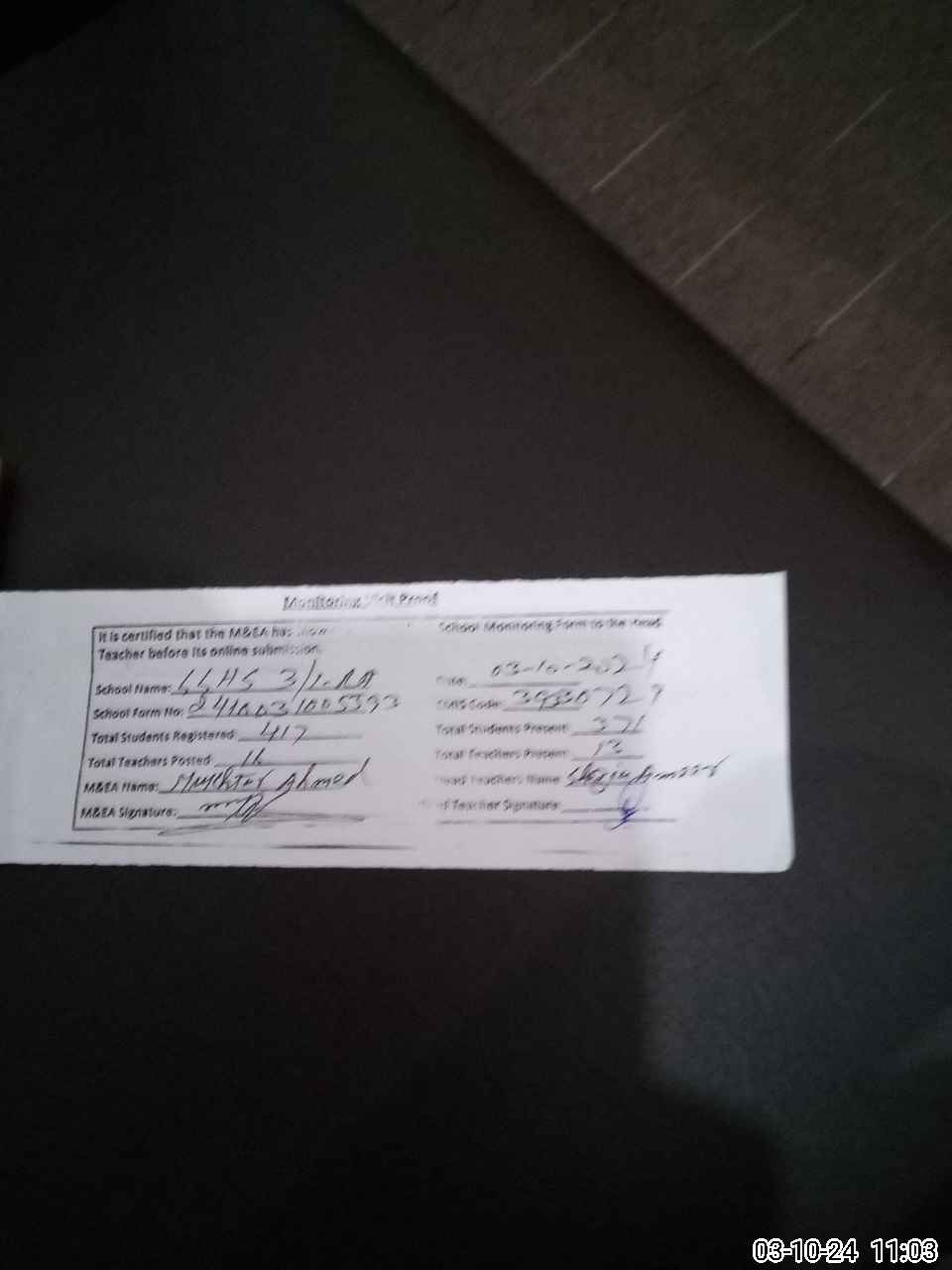 | Monitoring Date: 03-10-2024 | Start Time: 03-10-2024 10:05 AM | End Time: 03-10-2024 11:08 AM | Name of MEA: MU**** AH**** (R**** | |