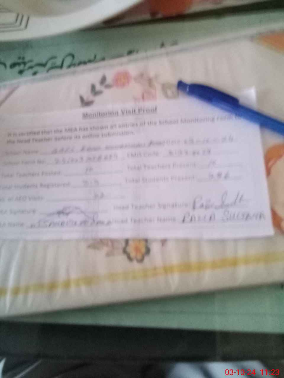 | Attendance Register | Head Teacher | MEA with School | Visit Proof |