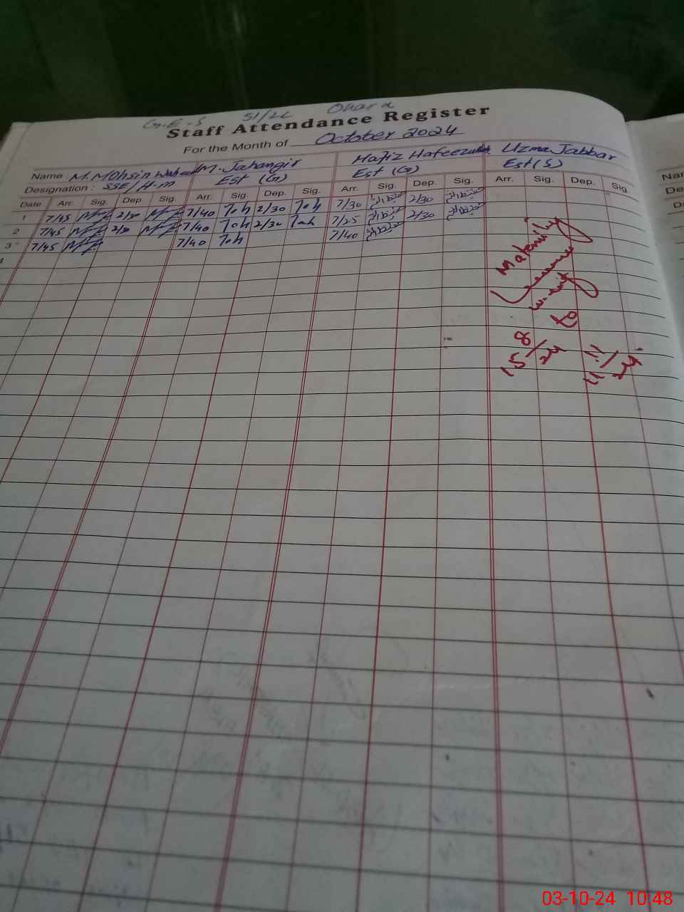 | CNIC | Full Name | Designation | R/C | Absence During Last Calender Month |