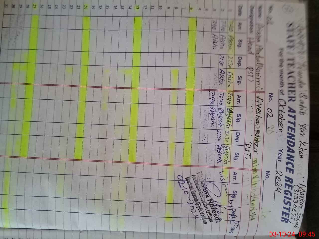 | Name: Ai**** AB**** KA**** Designation: (School Headmaster's/Headmistress's) PST Phone/Cell Number: 03**** |