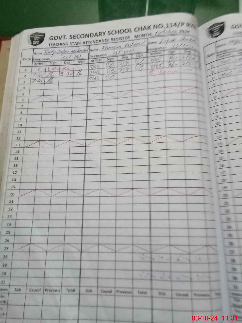 | 31**** | Mu**** Ad**** As**** | JUNIOR CLK | Regular | 0 | 0 | 0 | 0 | 0 | 0 | 0 | 0 | 0 | Casual |