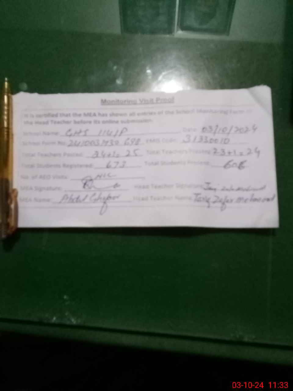 | EMIS Code: 31330010 | Name of School: GHS CHAK 114/P | |||