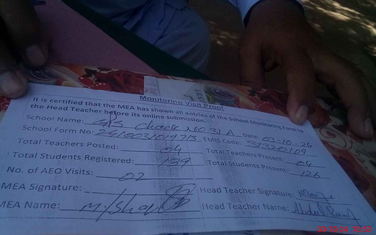| EMIS Code: 31320109 | Name of School: GPS CHAK 31 A | |||