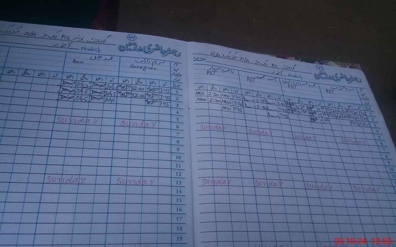 | CNIC | Full Name | Designation | R/C | Absence During Last Calender Month |