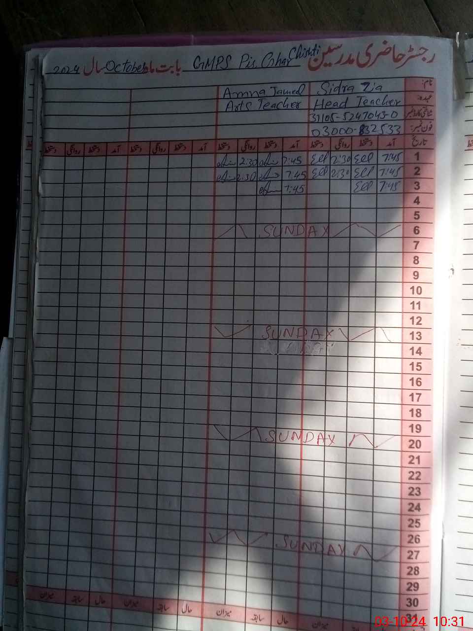 | Name: Si**** Zi**** Designation: (School Headmaster's/Headmistress's) ESE Arts Phone/Cell Number: 03**** |