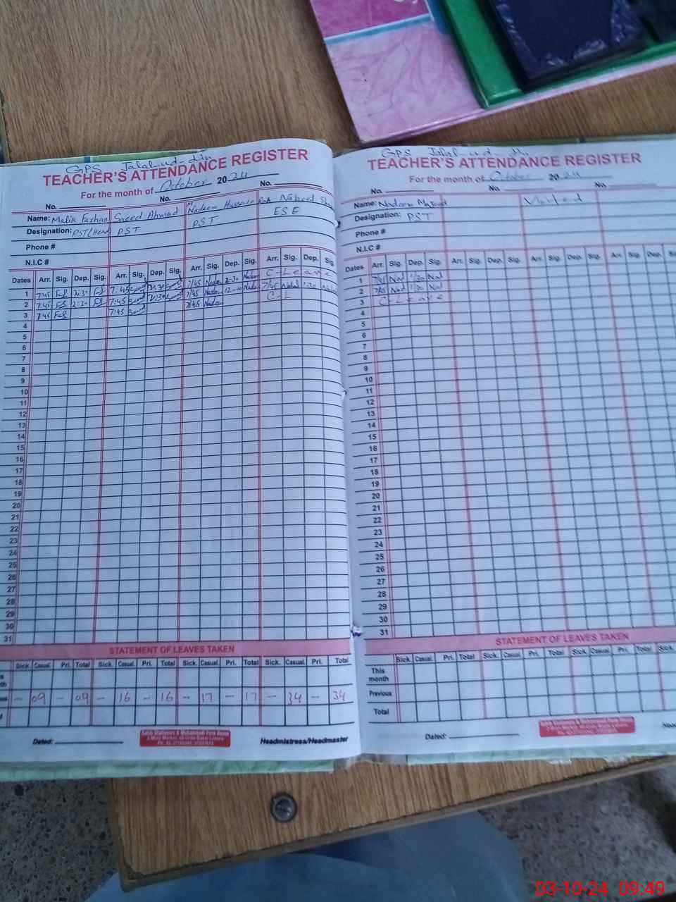 | Name: Ma**** Fa**** Designation: (School Headmaster's/Headmistress's) PST Phone/Cell Number: 03**** |