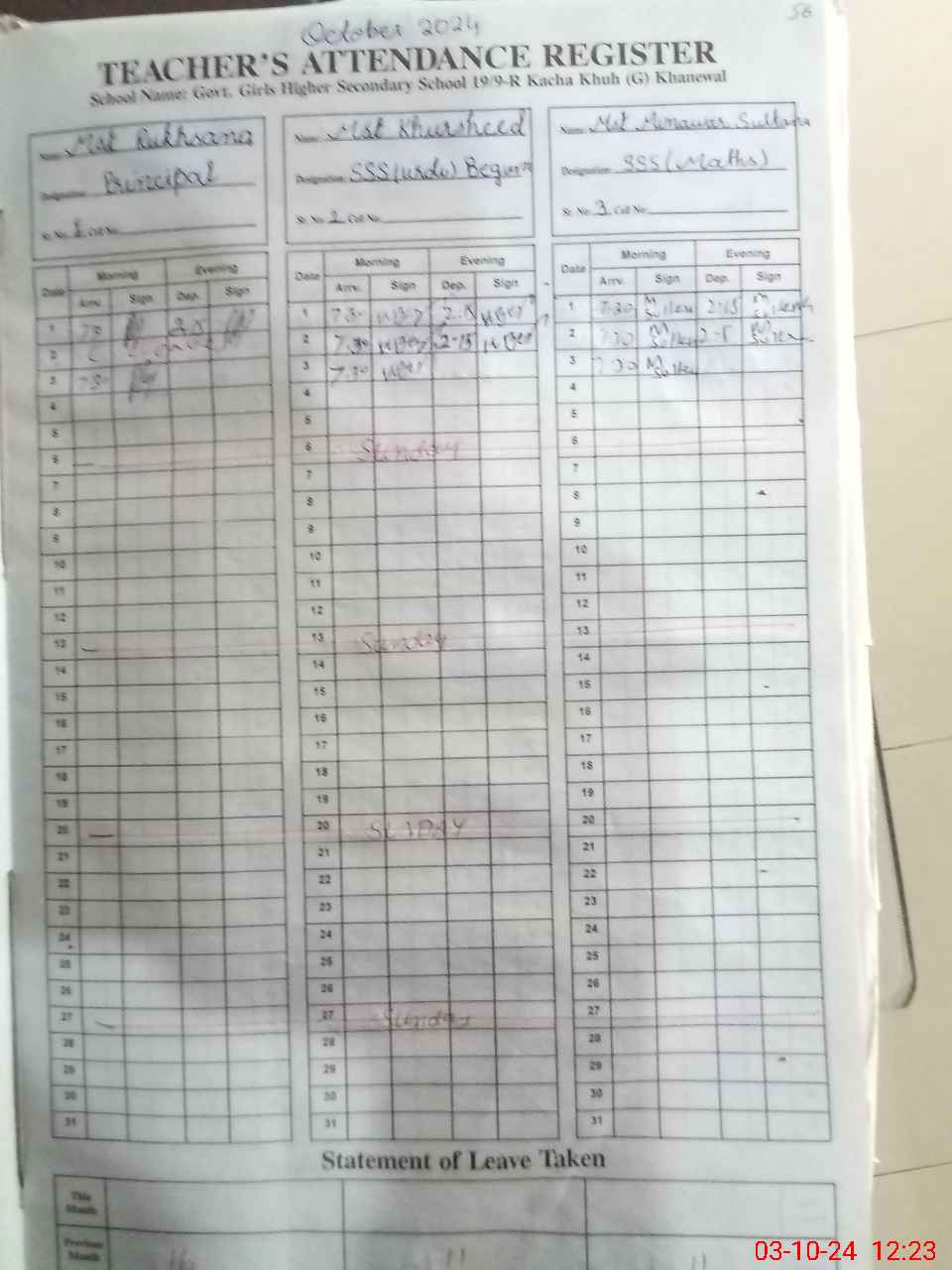 | EMIS Code: 36420054 | Name of School: GGHSS 19/9-R, KACHA KHUH | |||