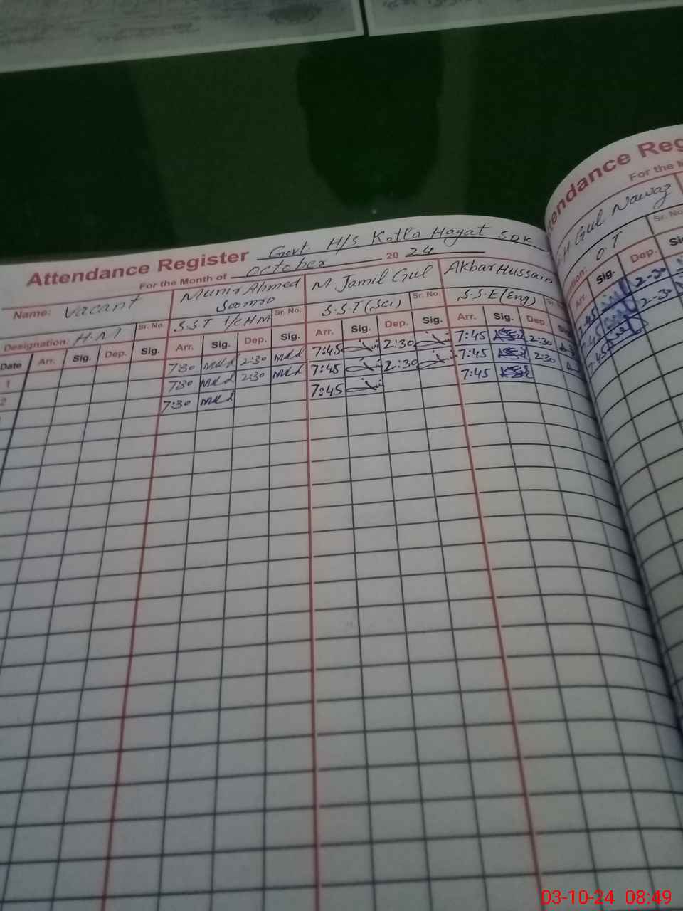 | Name: Mu**** Ja**** Gu**** Designation: (School Headmaster's/Headmistress's) SST Phone/Cell Number: 03**** |