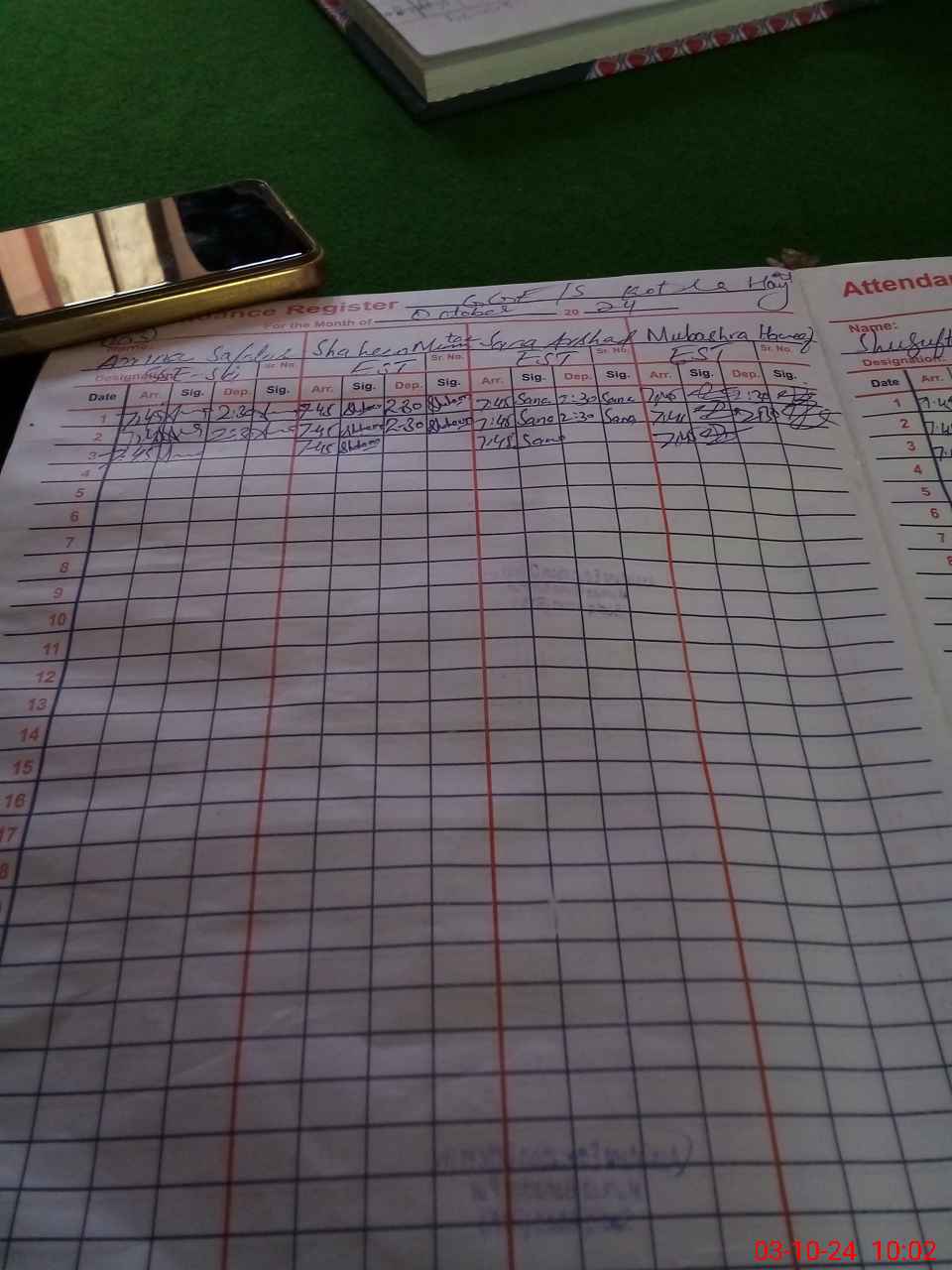 | 31**** | Ya**** Ra**** | CV | Contract | 0 | 0 | 30 | 0 | 0 | 0 | 0 | 0 | 0 | Absent (Un-Authorized) |