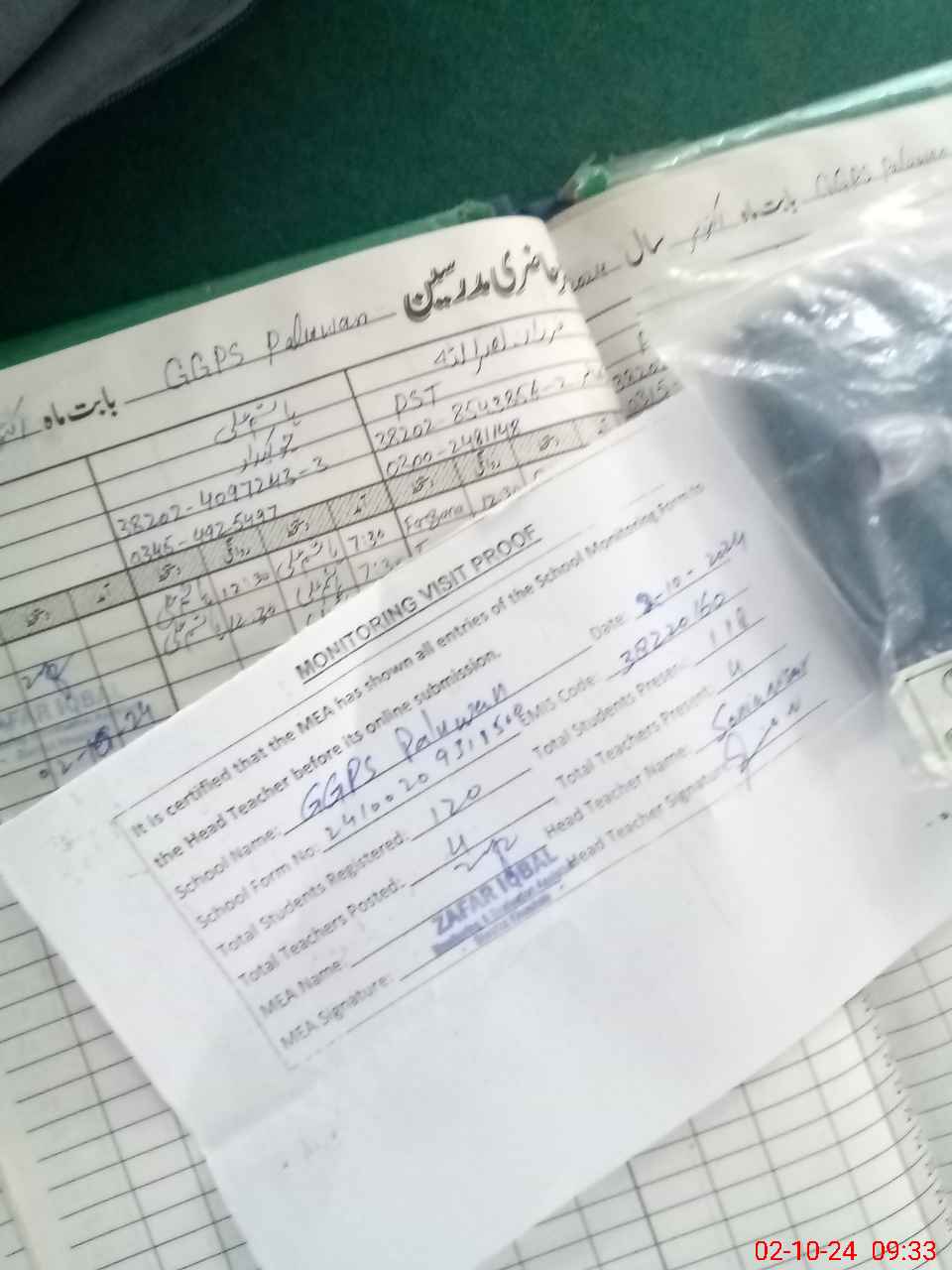 | Monitoring Date: 02-10-2024 | Start Time: 02-10-2024 09:05 AM | End Time: 02-10-2024 09:34 AM | Name of MEA: ZA**** IQ**** | |