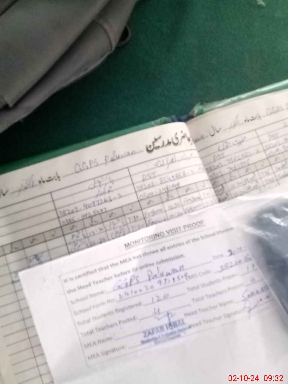 | Attendance Register | Head Teacher | MEA with School | Visit Proof |