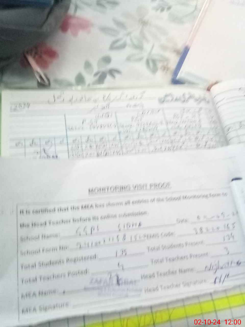 | Attendance Register | Head Teacher | MEA with School | Visit Proof |