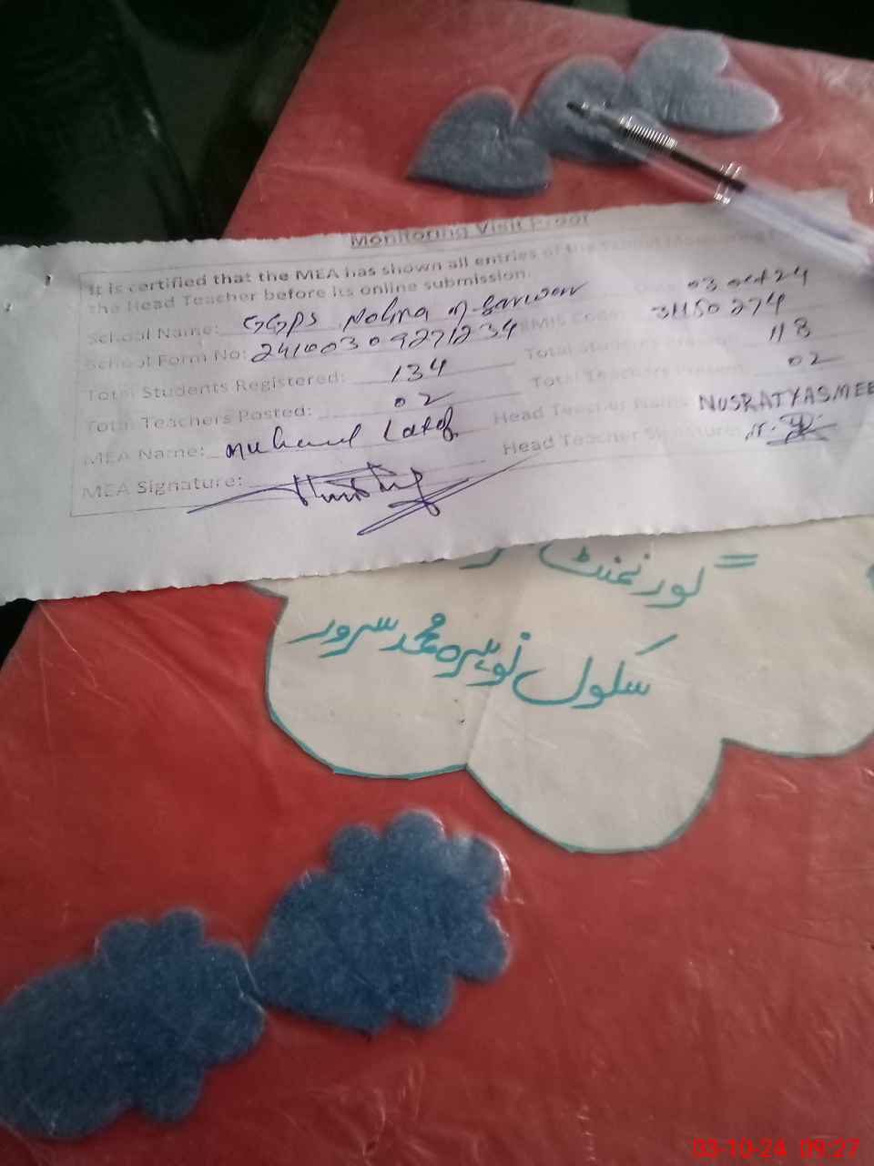 | Attendance Register | Head Teacher | MEA with School | Visit Proof |