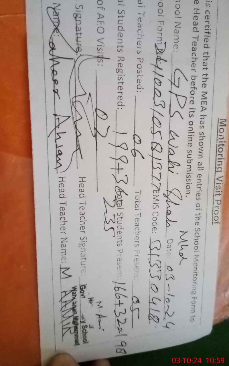 | EMIS Code: 31330418 | Name of School: GPS BASTI WAHI SHAH MUHAMMAD | |||