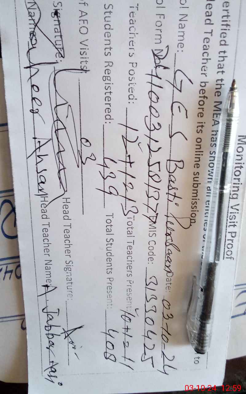| Certified that this School was Inspected by the Undersigned MEA/DMO Today and the Information Stated Above is as Per Record. | |||||