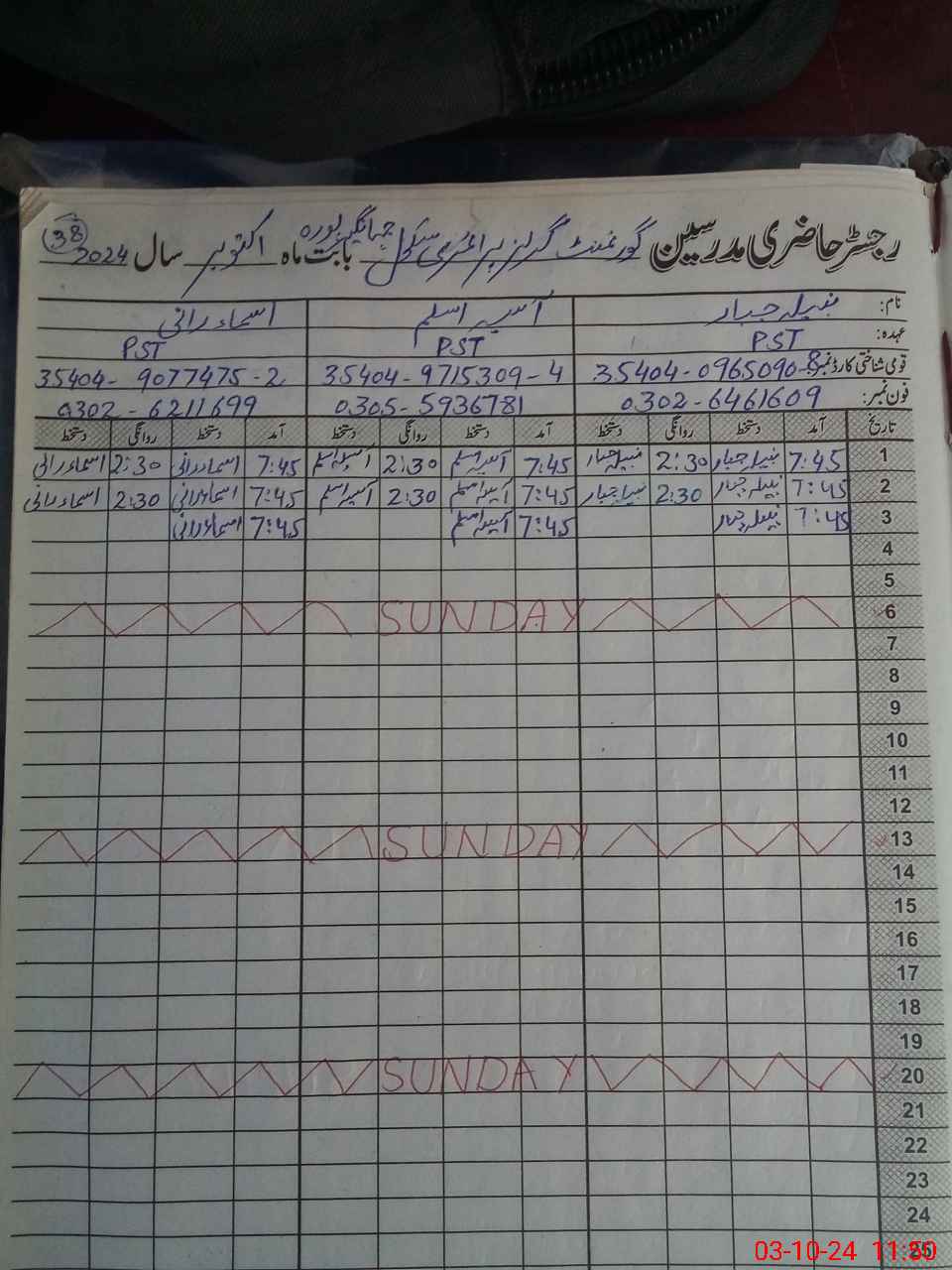 | CNIC | Full Name | Designation | R/C | Absence During Last Calender Month |