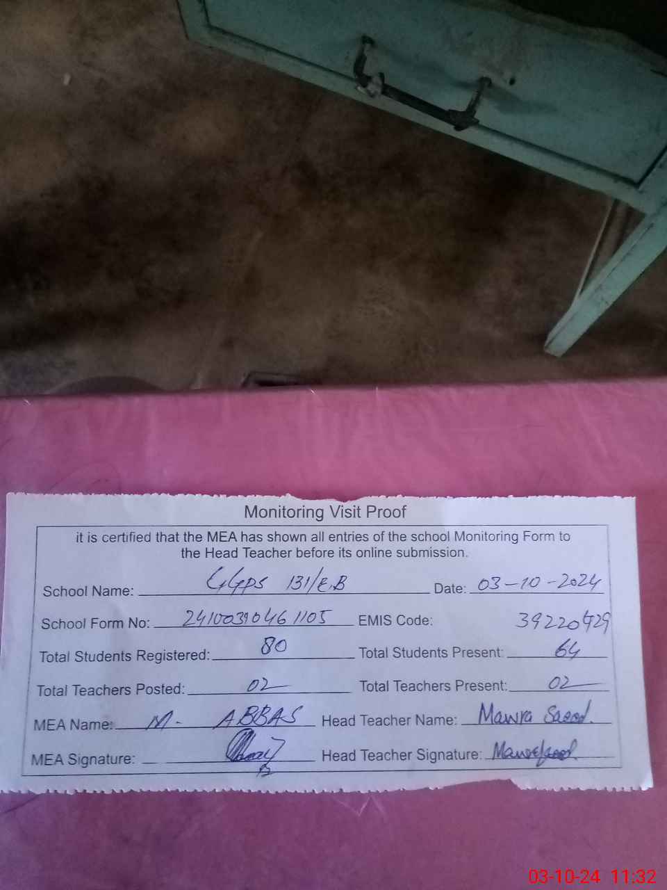 | EMIS Code: 39220429 | Name of School: GGPS 131 EB | |||
