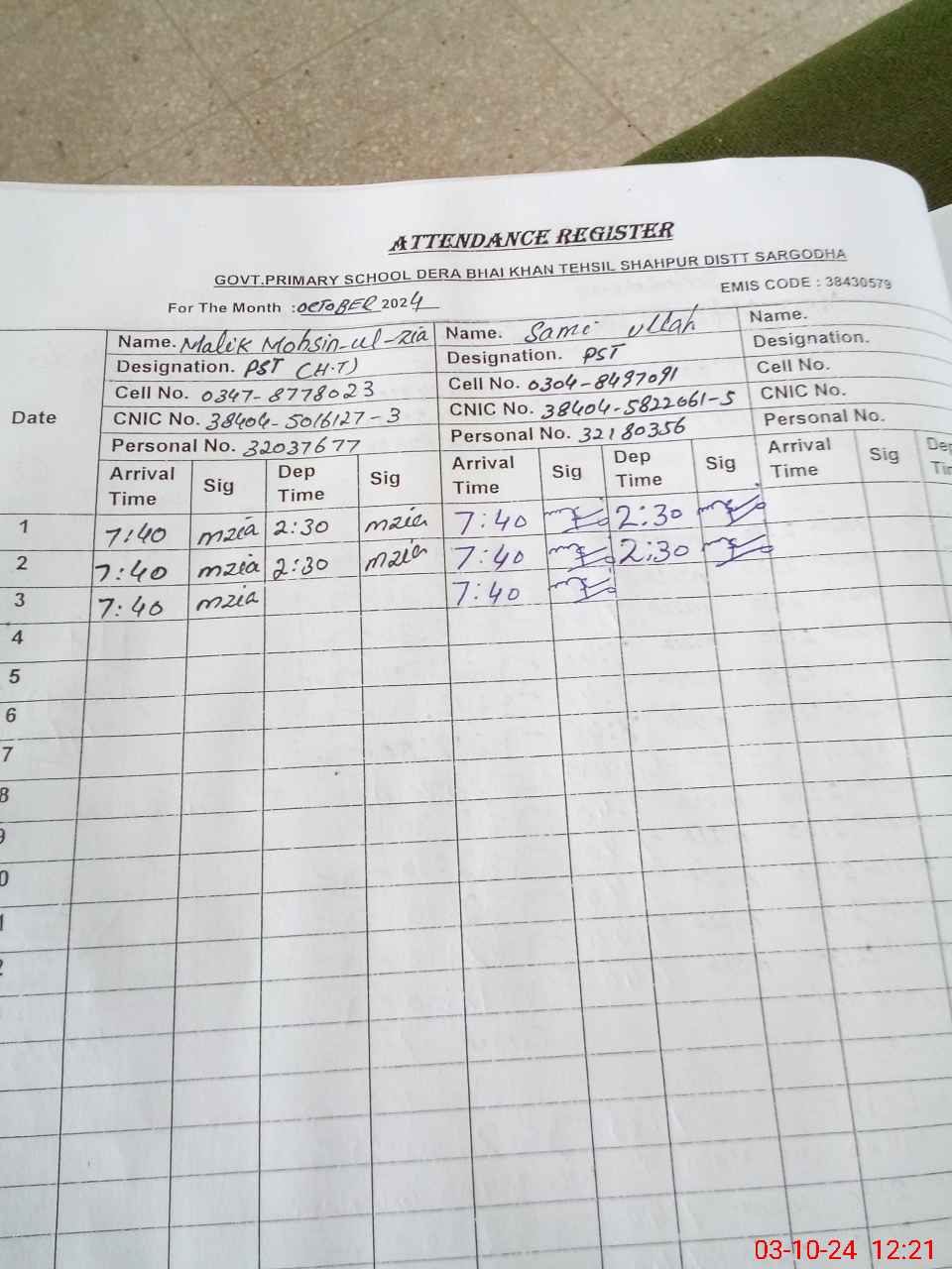 | Name: MA**** MO**** ULZI**** Designation: (School Headmaster's/Headmistress's) PST (SCI-MATH) Phone/Cell Number: 03**** |