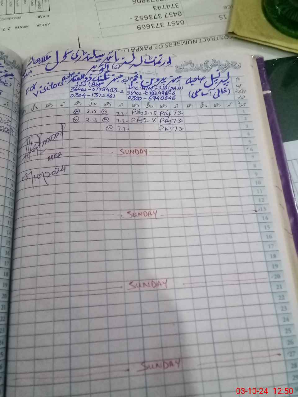 | Name: Pa**** An**** Designation: (School Headmaster's/Headmistress's) INCHARGE ,PRINCIPAL Phone/Cell Number: 03**** |
