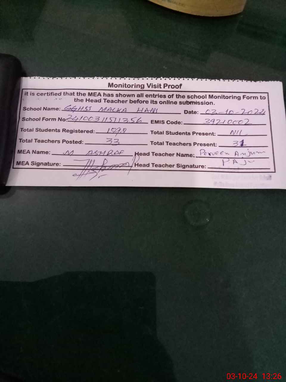 | Certified that this School was Inspected by the Undersigned MEA/DMO Today and the Information Stated Above is as Per Record. | |||||