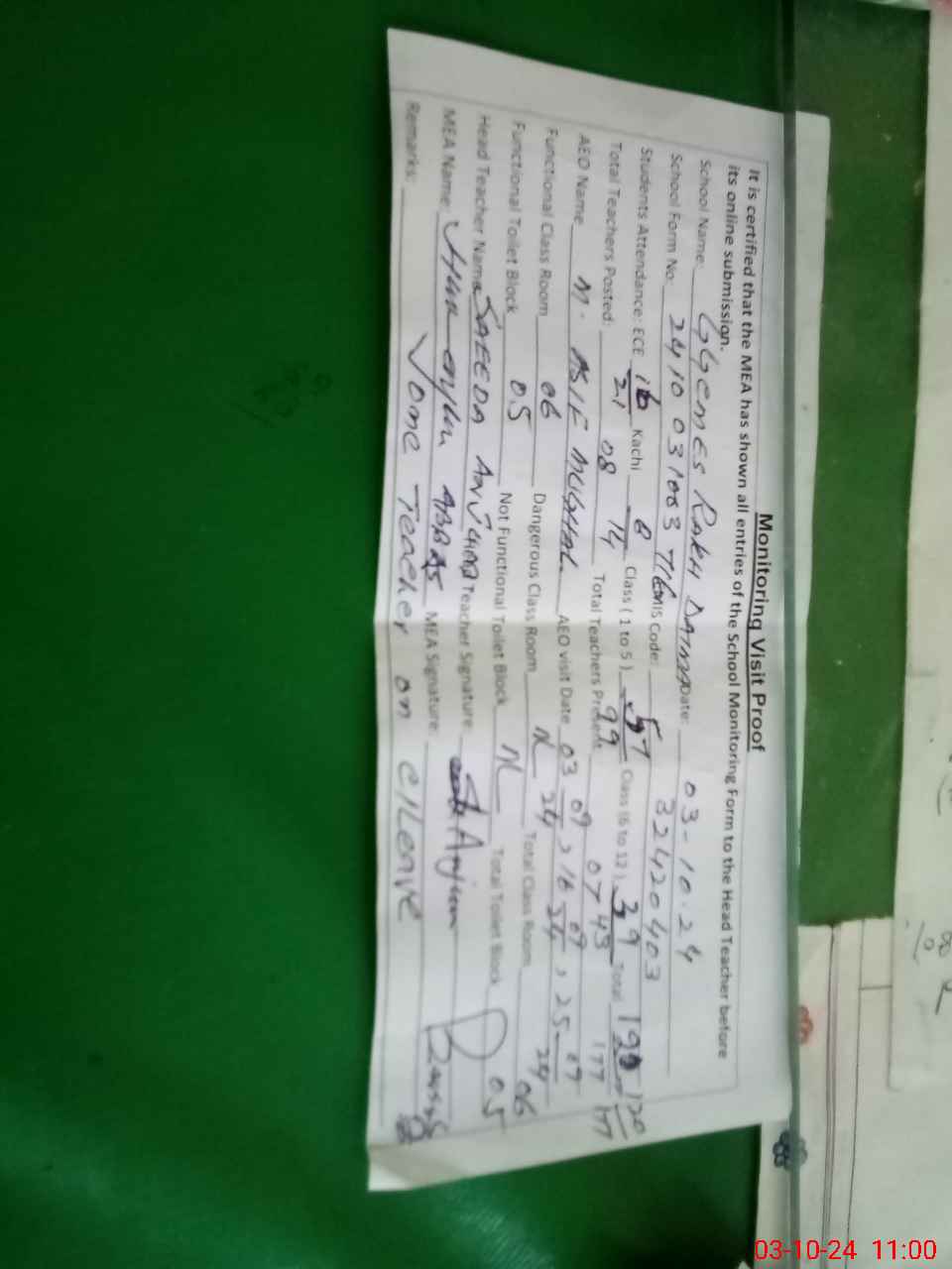 | Certified that this School was Inspected by the Undersigned MEA/DMO Today and the Information Stated Above is as Per Record. | |||||