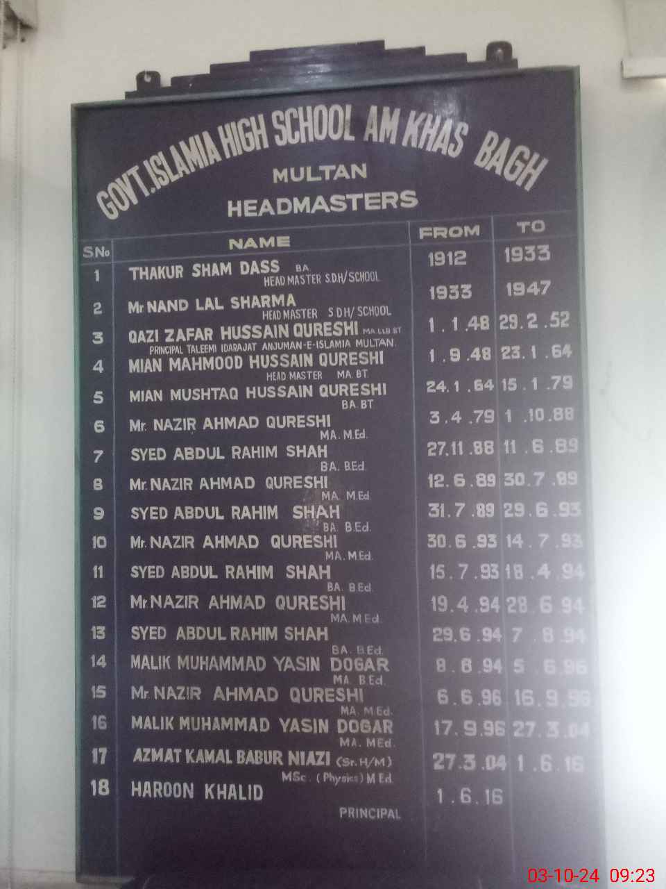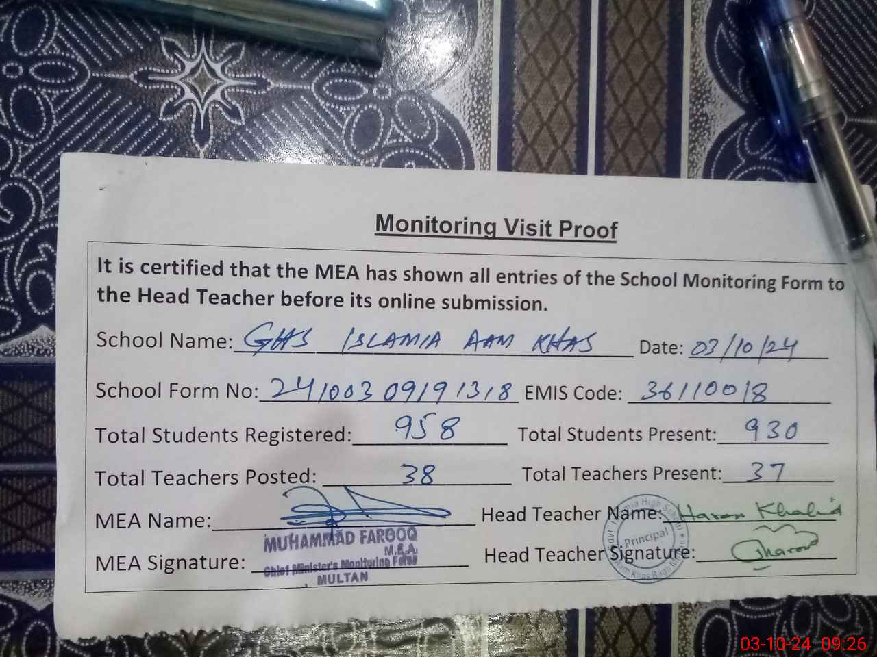 | EMIS Code: 36110018 | Name of School: GHS ISLAMIA AAM KHAS BAGH MULTAN | |||