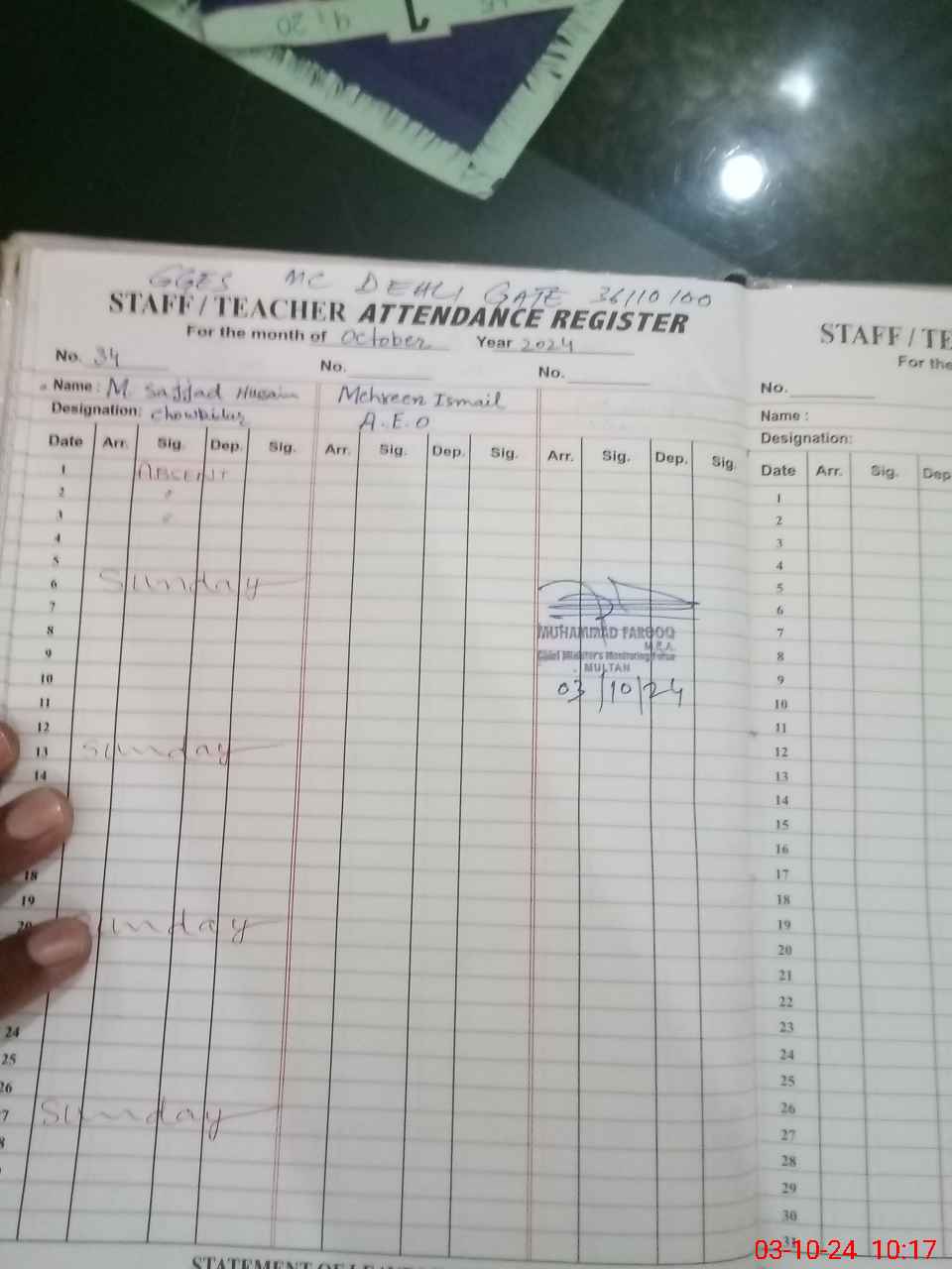| 36**** | Sa**** Hu**** | CHOWKIDAR | Regular | 0 | 0 | 0 | 0 | 0 | 0 | 0 | 0 | 0 | Absent (Un-Authorized) |