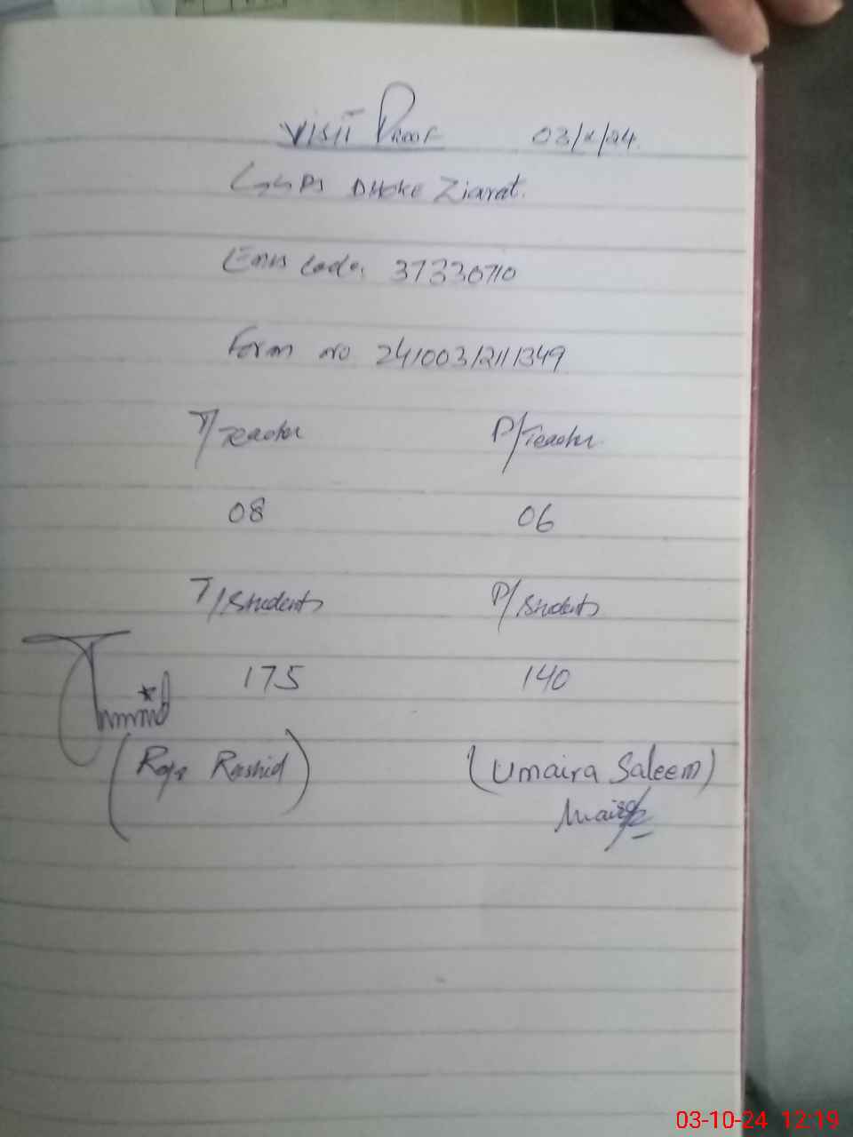 | EMIS Code: 37330710 | Name of School: GGPS DHOK ZIARAT | |||