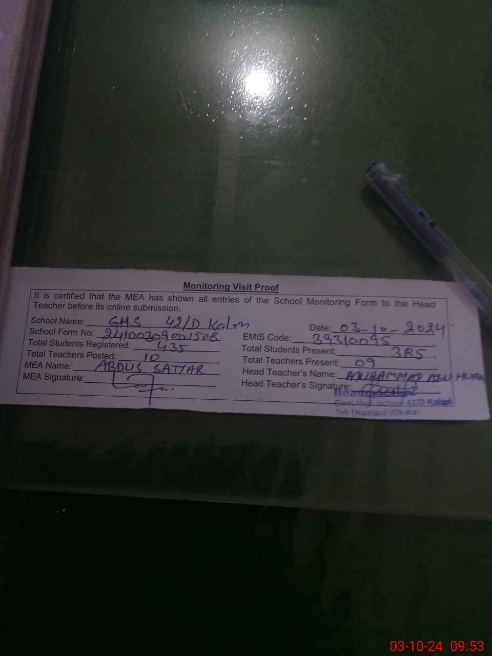 | EMIS Code: 39310095 | Name of School: GHS CHAK 42/D KALAN | |||