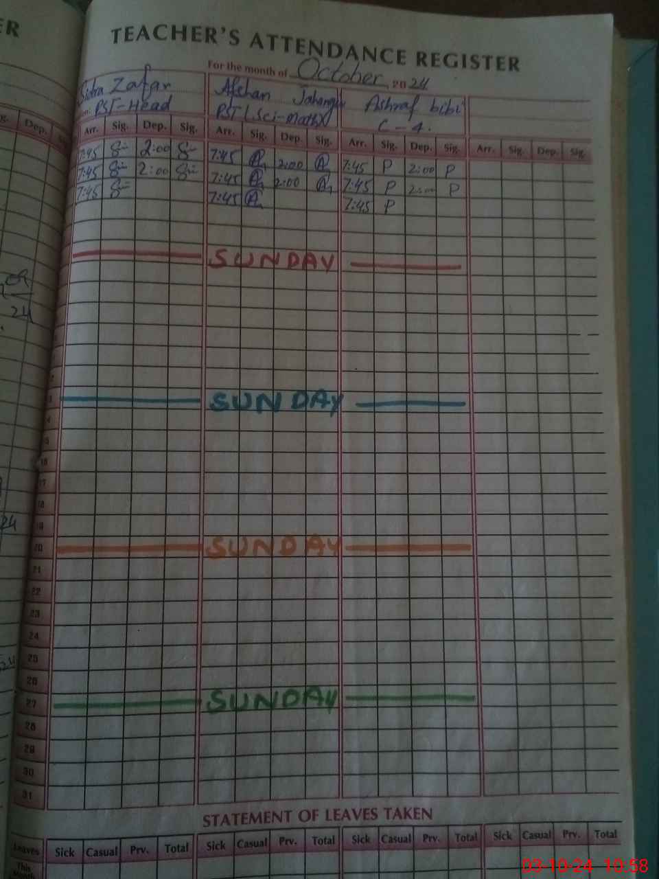 | CNIC | Full Name | Designation | R/C | Absence During Last Calender Month |