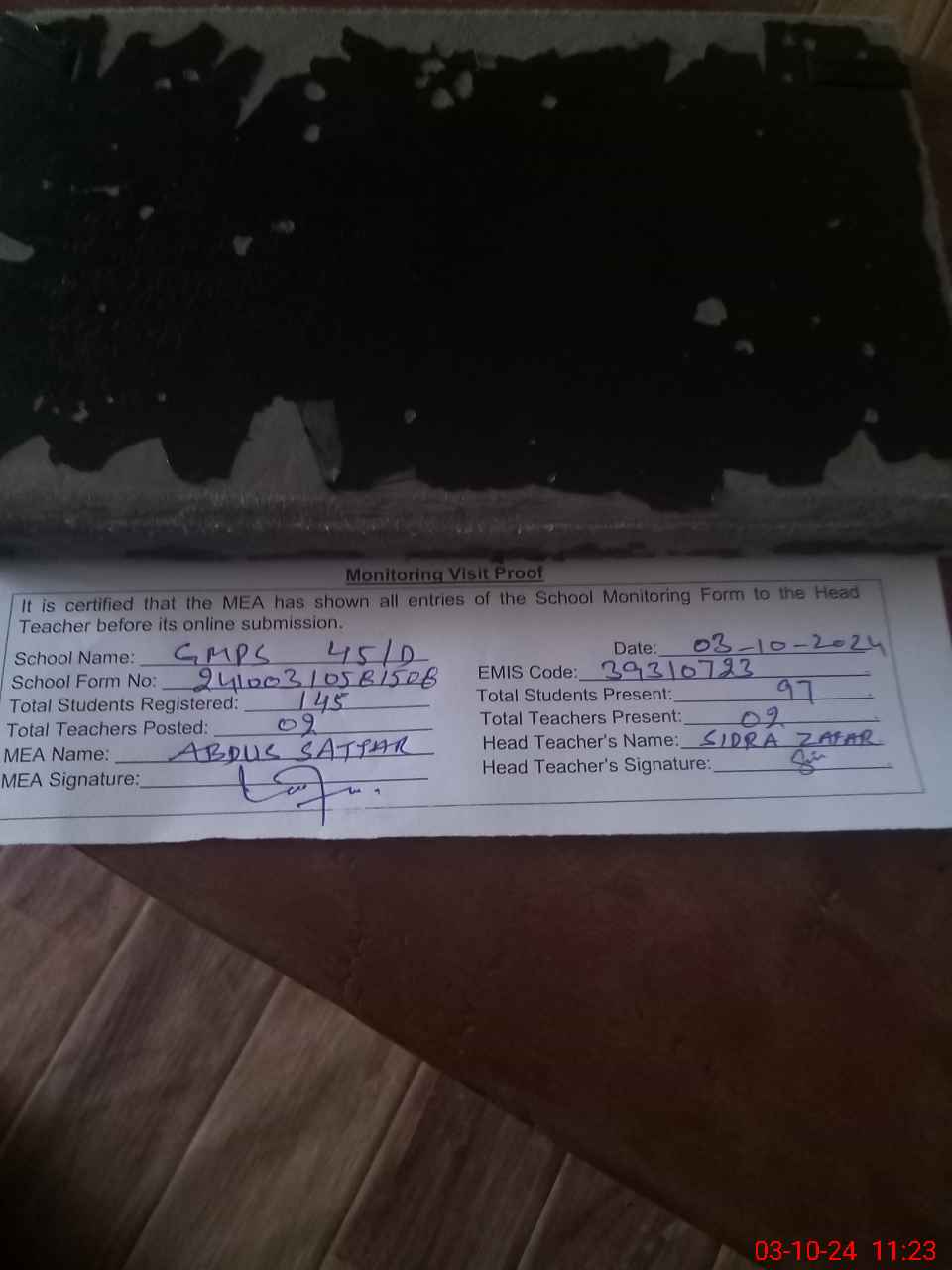 | Certified that this School was Inspected by the Undersigned MEA/DMO Today and the Information Stated Above is as Per Record. | |||||
