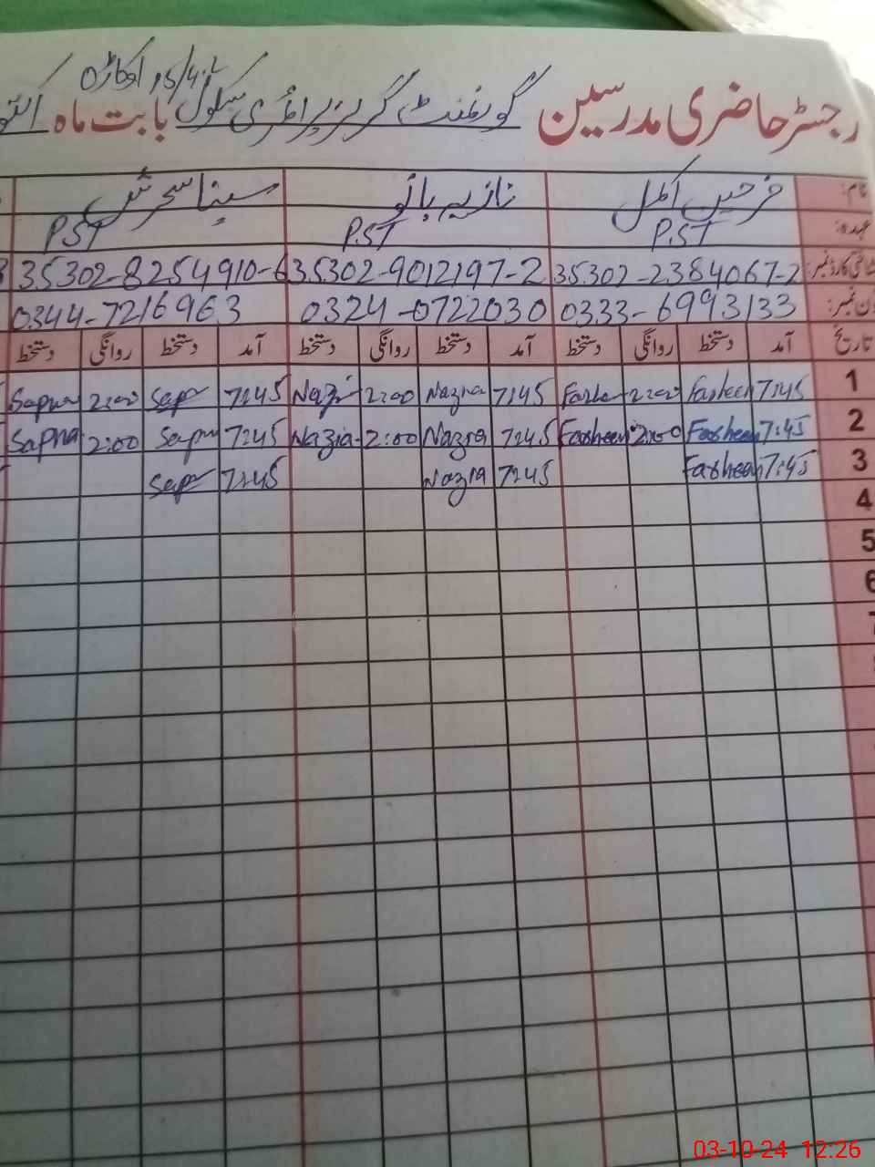 | Name: FA**** AK**** Designation: (School Headmaster's/Headmistress's) PST Phone/Cell Number: 03**** |